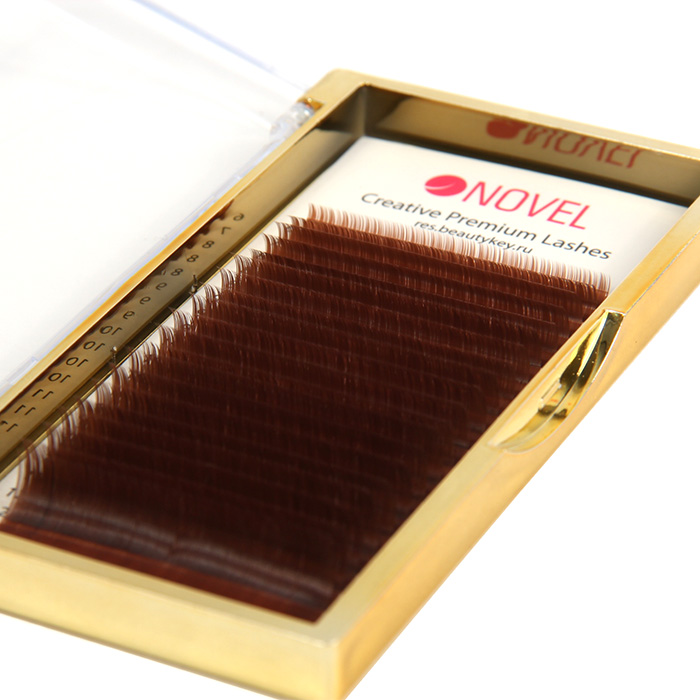 Светло-коричневые ресницы Novel выпускаются в изгибах C, D, CC. Толщина 0,07; 0,10. Микс размеры с длинами от 6 до 13 мм (6мм - 1, 7мм- 1, 8-3, 9 -3, 10-3, 11- 3, 12-3, 13 -1)